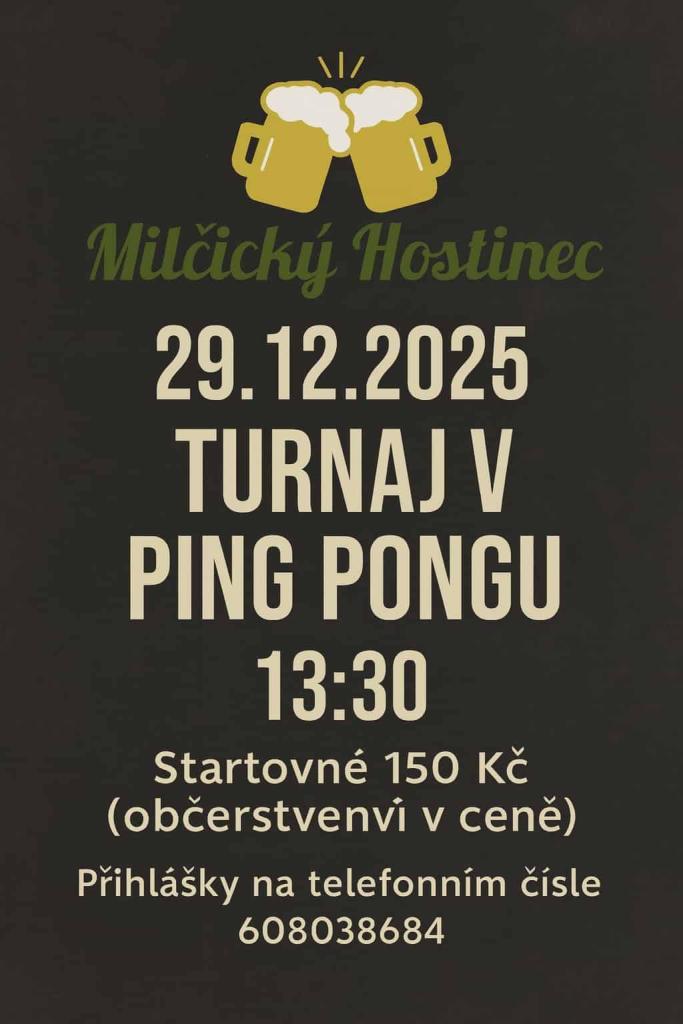 Chcete se po Vánocích protáhnout? Zajděte 29.12. od 13:30 do Hostince na ping pong. Startovné 150 Kč, občerstvení v ceně.