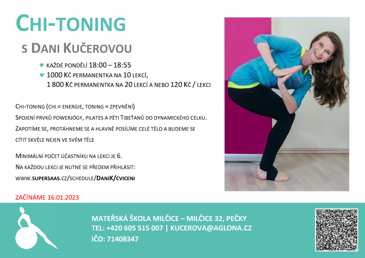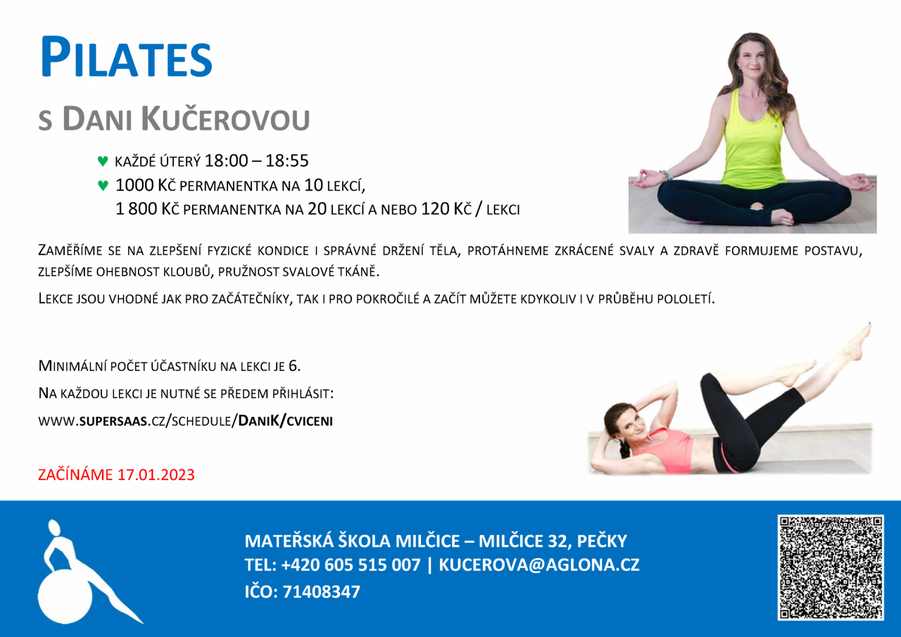 Hledáte možnost upevnit své zdraví a protáhnout si tělo bez dojíždění? V MŠ Milčice nově probíhají lekce pilates a Chi-toningu s lektorkou Dani Kučerovou. Budeme rádi, pokud se přidáte!
