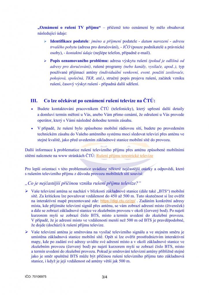 IOznámení o rušení televizního příjmu na ČTÚ:
