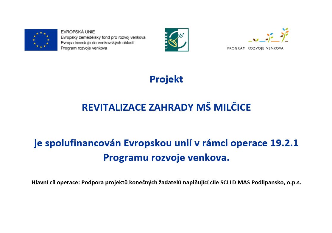 Mateřská škola Milčice stále pracuje na svém rozvoji. V prostoru školní zahrady byly instalovány další herní prvky pro děti. Jedná se o 3 stanoviště – oválnou dráhu, dřevěné sedací špalky a sud s vodními přepady.