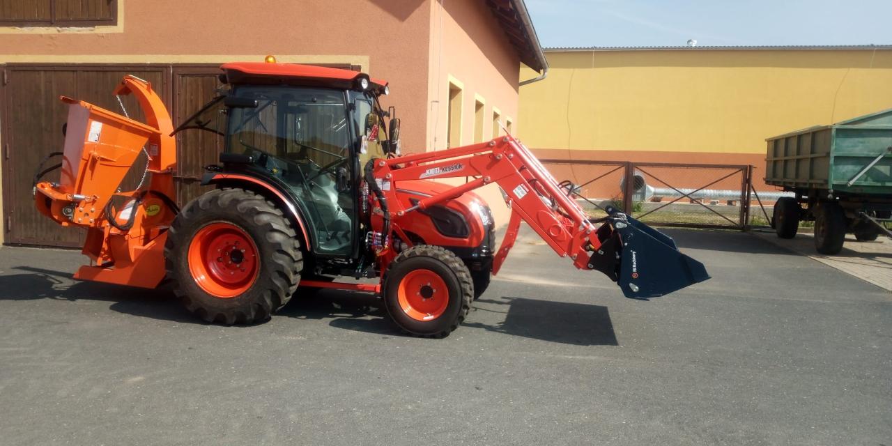 K traktoru je k dispozici široká škála příslušenství – štěpkovač, mulčovač, nakladač, cisterna a valník. V zimních měsících půjde využít také pluh k odklízení sněhu.