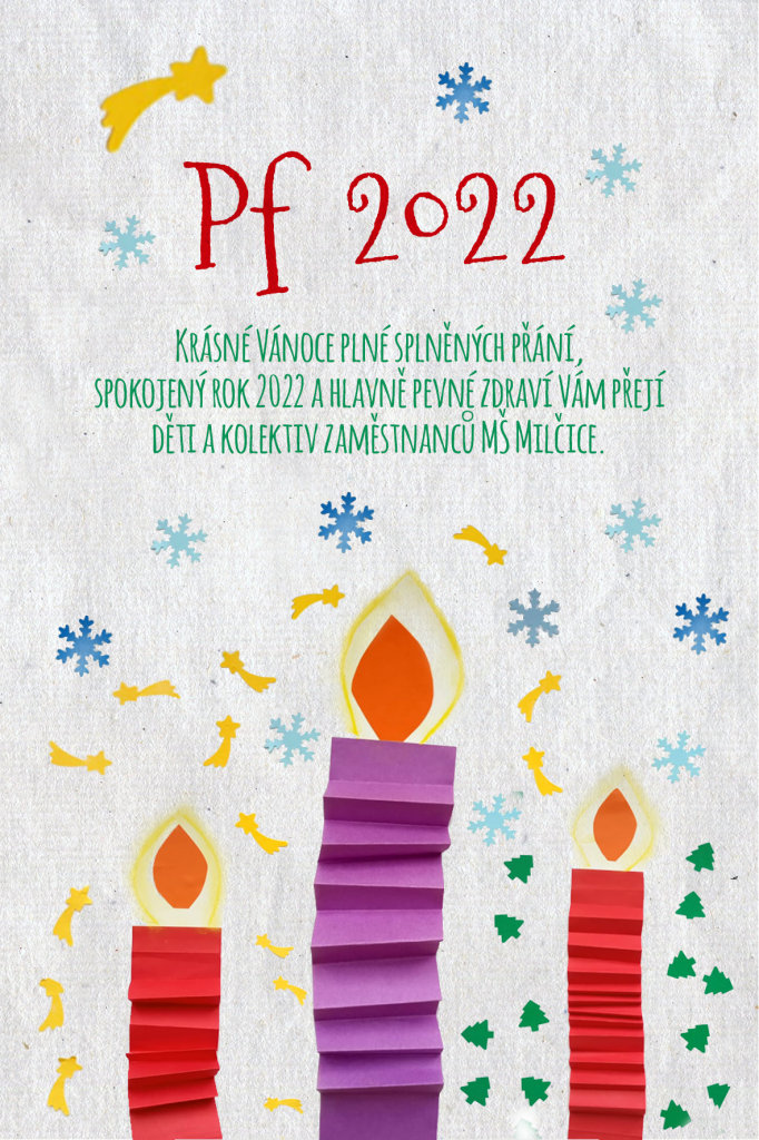 S radostí předáváme PF 2022 od dětí a kolektivu zaměstnanců MŠ Milčice!