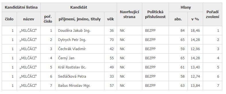 Vážení občané, volby do obecního zastupitelstva jsou za námi - v detailu zprávy najdete tabulku s kompletními výsledky. Svůj hlas přišlo odevzdat 102 voličů z možných 229. Všem z nich děkujeme za účast a důvěru!