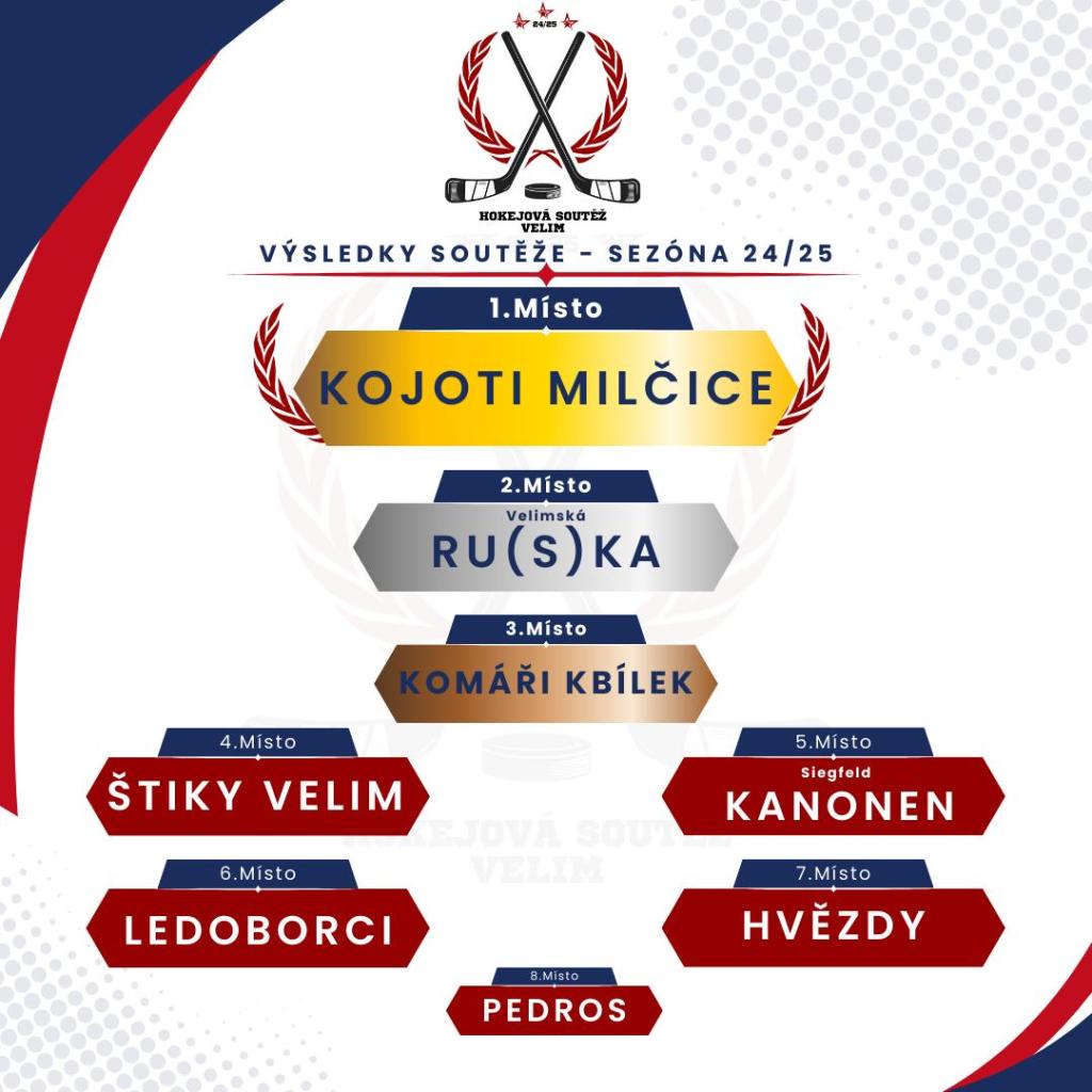 Druhý měsíc roku 2026 přinesl do naší obce významný sportovní úspěch. Tým HC Kojoti Milčice ovládl Hokejovou soutěž Velim a zaslouženě si odnesl prvenství. Na druhém místě skončil domácí celek Ru(s)ka z Velimi a třetí příčku obsadili Komáři Kbílek.